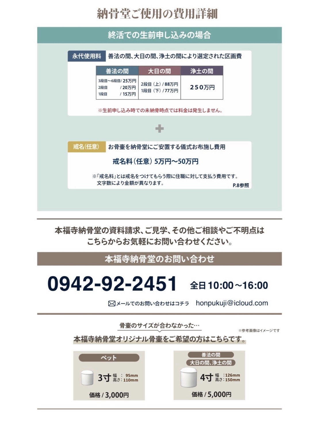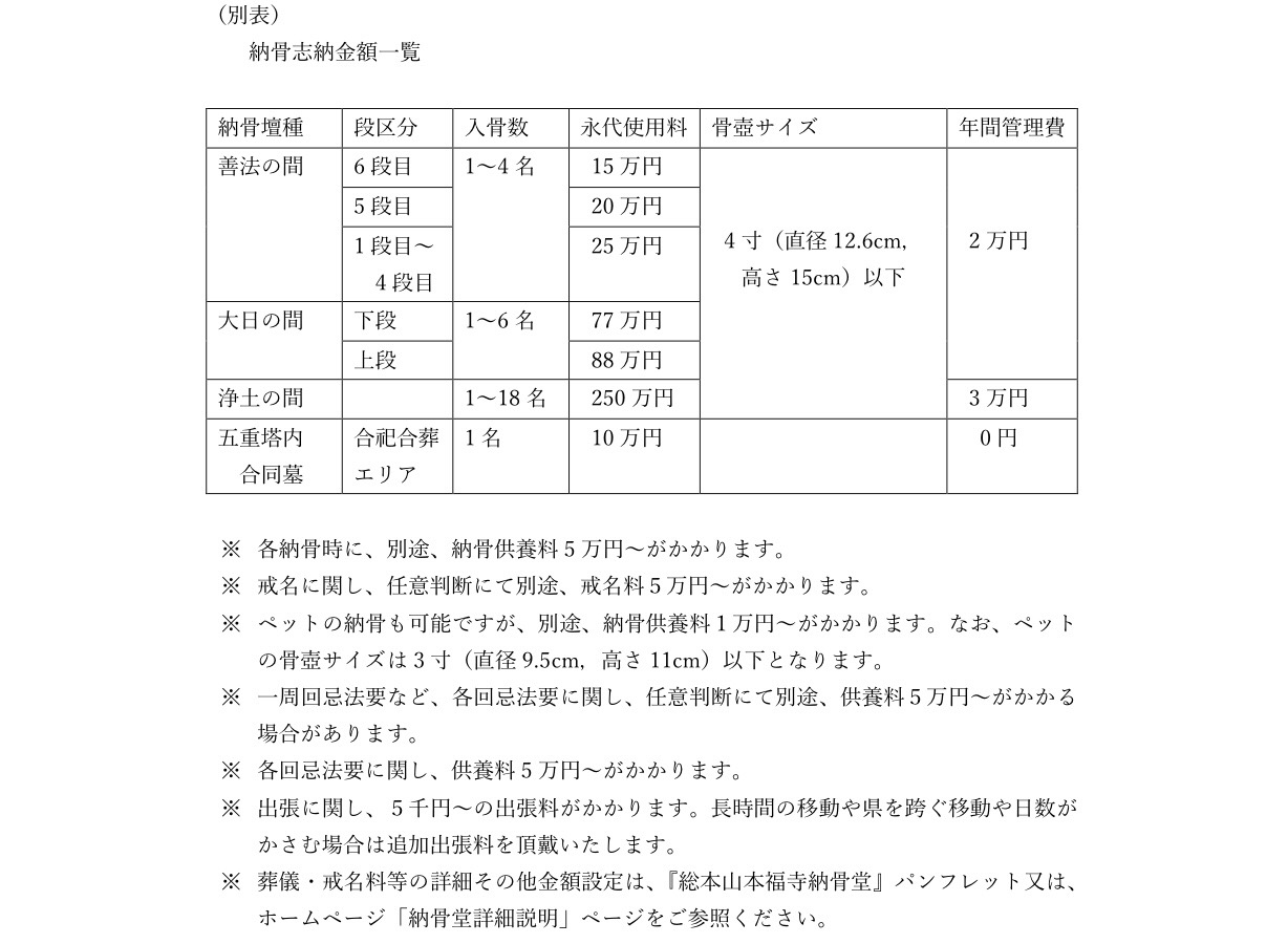 五重塔納骨堂区画詳細説明