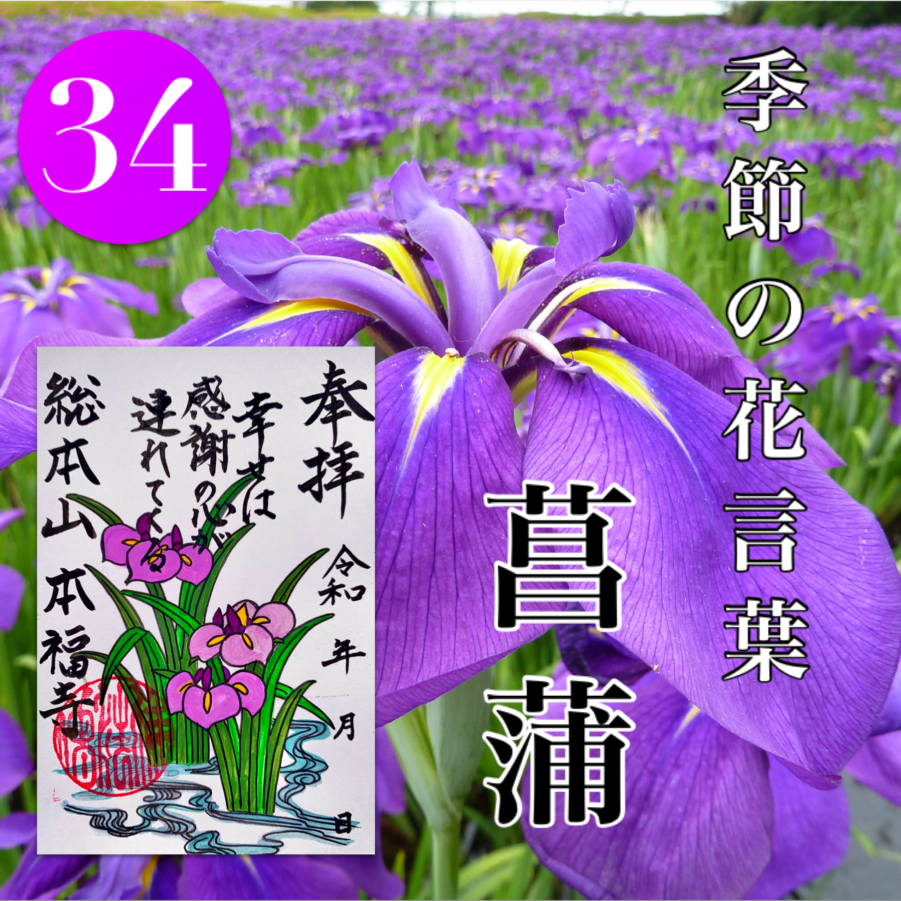 ㉞1000円 季節の花言葉 花菖蒲 幸せは感謝の心が連れてくる