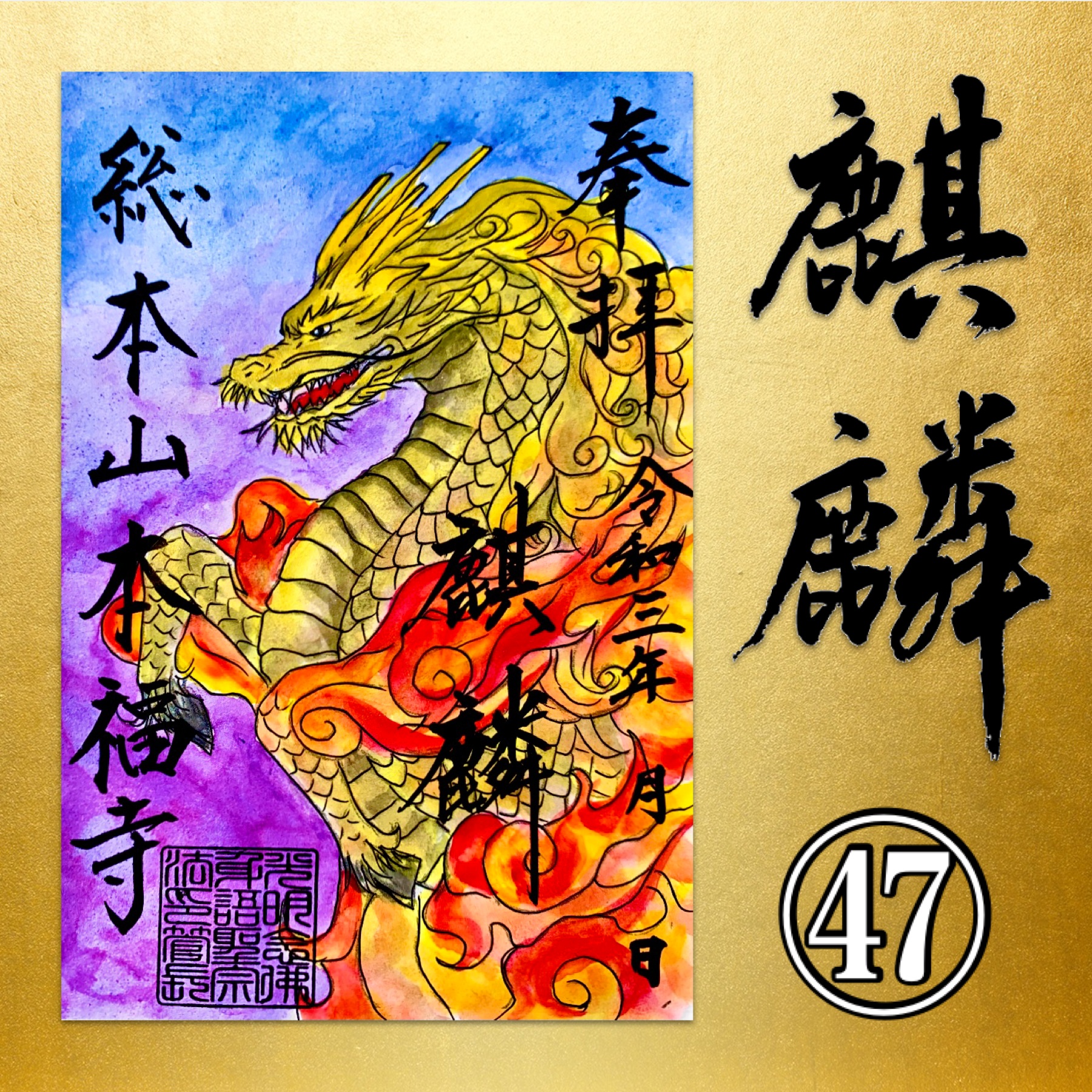 現代書道アーティスト剣朧氏とのコラボデザインによる登龍の御朱印は、本福寺